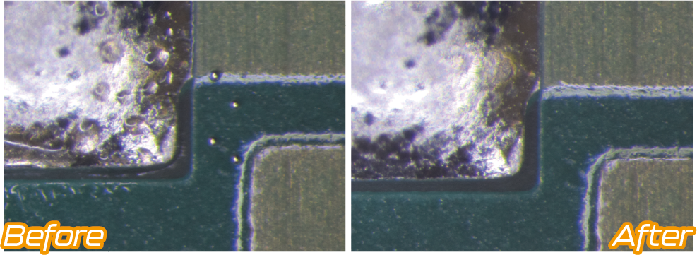 为了确保高密度贴装基板的可靠性,助焊剂清洗是必不可少的。在化学物质法规不断加强的同时如停止CFC替代品的生产以及中国VOC规则中增加了清洗剂GB标准等,化研科技开发了兼顾更高精密清洗和环保配方的高机能·低VOC的【MICROCLEAN ECO & MARKLESS ECO】清洗剂产品。