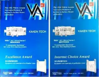 这些特点在众多客户的生产现场受到好评,使ST-05U漂洗系统与半水基系统并列成为助焊剂清洗的主流,并且不断扩大市场采用率。最近,在中国的【SMT China 表面组装技术】主办的第15届远见奖评选活动中,【MICROCLEANER】清洗系统荣获两个奖项。 (图5)