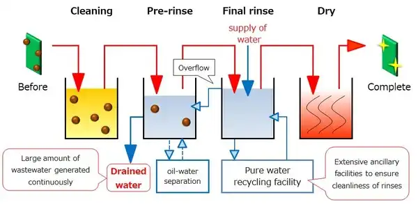 另一方面,挥发性有机溶剂(VOC)的低排放量和水本身的高安全性,使得半水基清洗系统至今仍被持续使用。