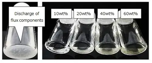 图 11 在水漂洗中排出助焊剂的示例(左)和添加3wt%助焊剂后,ECO-8100在各种浓度下的ECO-R81外观对比图