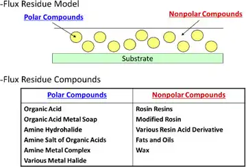 后续工序中,在焊接面上涂敷底部填充胶、模塑树脂等的情况下,如果存在助焊剂残渣,残渣中的金属皂类成分、蜡类成分可能会影响树脂的润湿性,进而导致涂层产生空隙,或由于助焊剂中的胺化合物等成分导致树脂的固化不良。