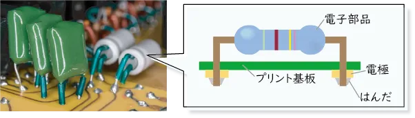 表面贴装也被称为SMT(Surface Mount Technology的缩写),如下图所示,是在印刷电路板表面配置的连接电极(焊盘)上搭载电子元件的电极或配线并进行焊接的方法。焊接方式为回流焊。